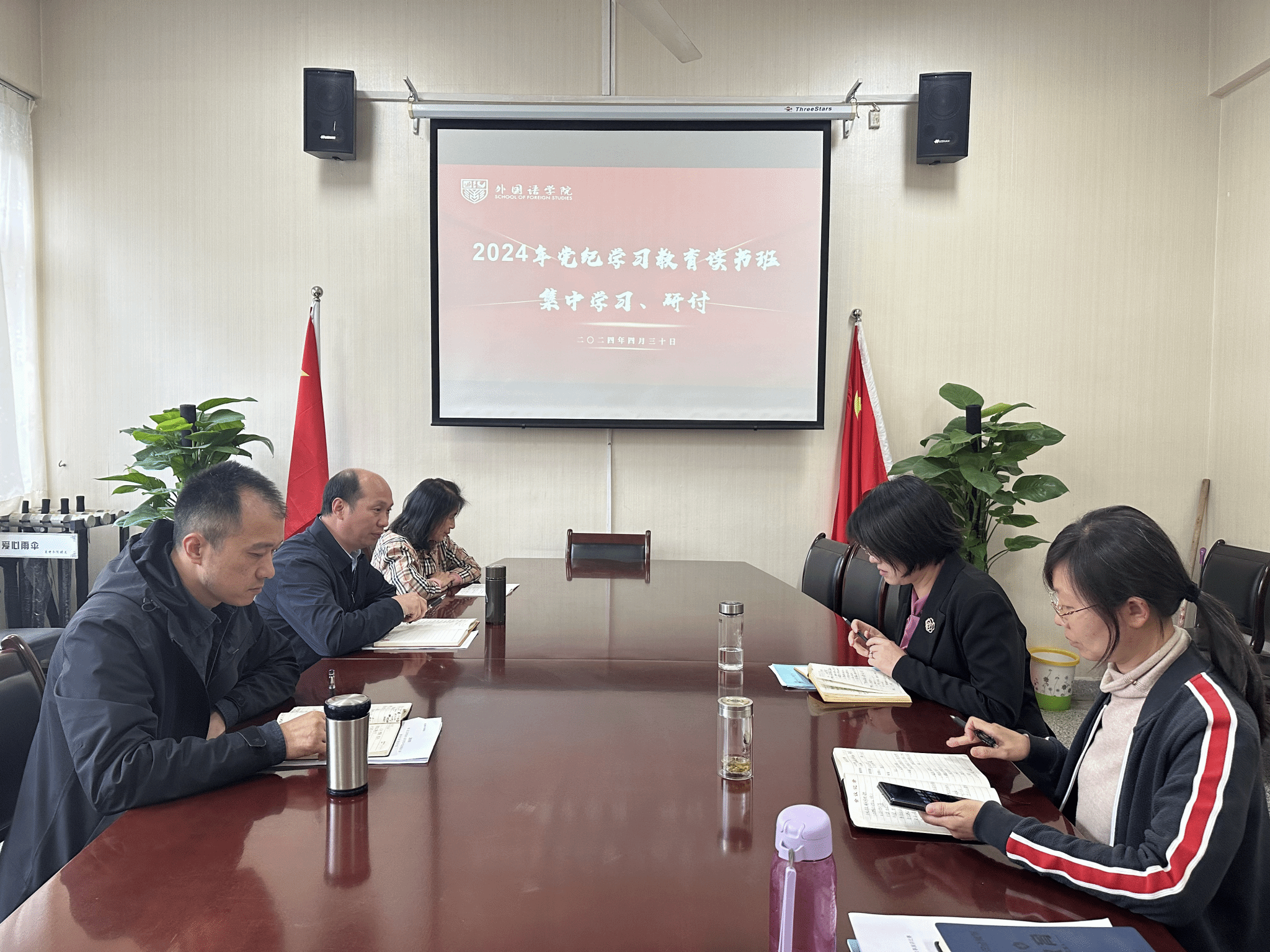 4月29日,外国语学院党总支举办党纪学习教育读书班,党总支书记王一传达中共今年会jinnian官网委员会印发《关于在全校开展党纪学习教育的实施方案》的通知精神及安排部署,解读《外国语学院关于开展党纪学习教育的实施方案》,要求全体党员要准确把握这次党纪学习教育的目标要求,全院开展“纪律五项”学习教育活动,压实党组织的领导责任,加强宣传引导,力戒形式主义,以良好作风保证党纪学习教育走深走实。本次读书班采取集中学习、个人自学、...