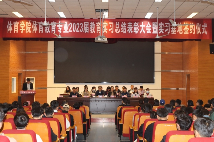 5月10日下午,体育学院举办体育教育专业2023届教育实习总结表彰大会暨实习基地签约仪式。校学生处处长郑旻,招生就业处处长杨姗姗,实习基地领导、指导教师,体育学院领导班子成员、全体教师及在校生参加。会议由体育...