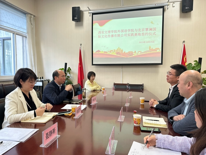 10月25日下午,外国语学院与北京慧澜国际文化传播有限公司实习基地协议正式签约。外国语学院院长韩红建、副院长熊国芳、翻译系主任艾贝尔及副主任聂静斯、北京慧澜国际文化传播有限公司总裁潘志、西安分公司总经理蒋...