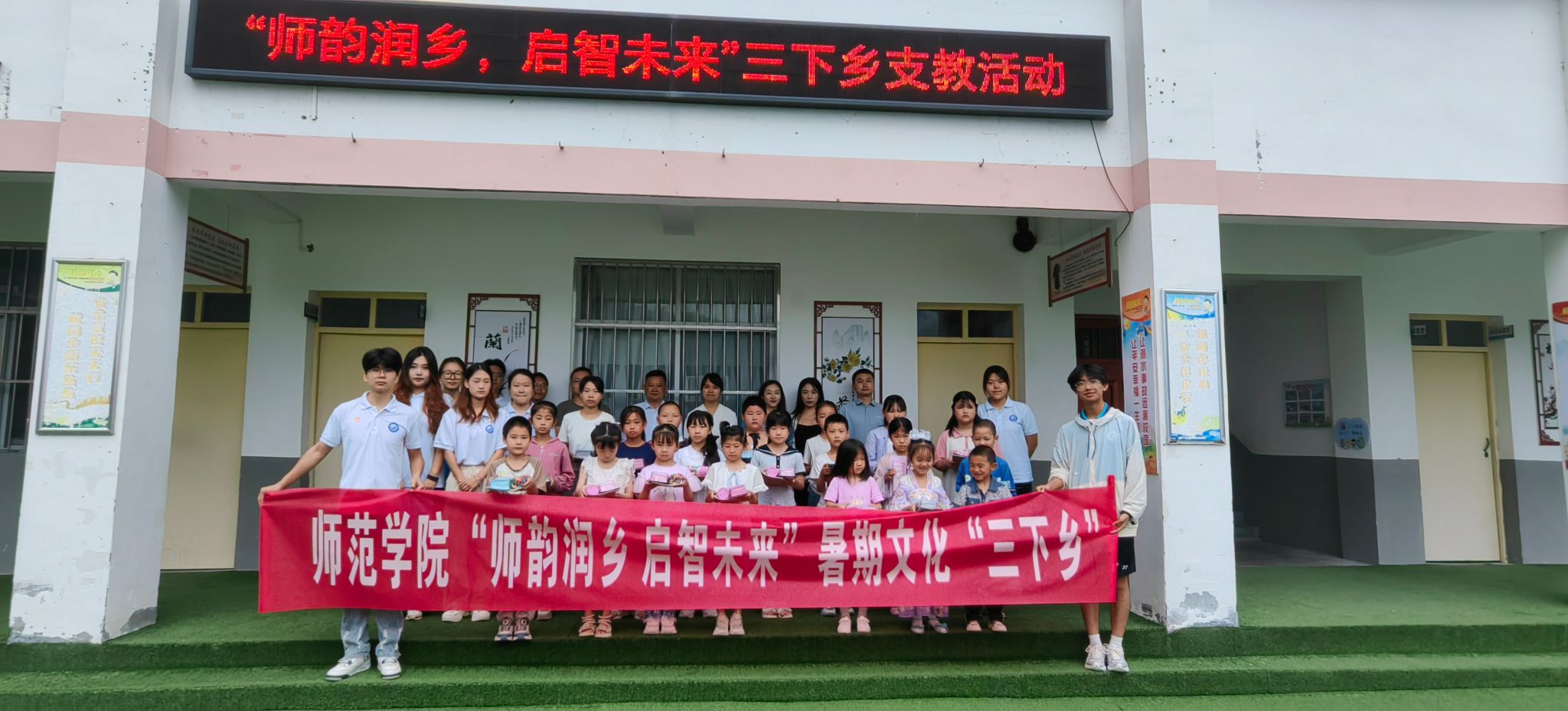 7月8日-7月12日,师范学院大学生支教团队进驻宁陕县龙王镇铁炉小学开展以“师韵润乡,智启未来”为主题的暑期社会实践活动。在启动仪式上,宁陕县龙王镇副镇长刘汪洋等镇村干部、铁炉小学校长李思林、今年会驻村工作队员、师范学院学工办副主任刘昱彤及辅导员王晓波分别为参与的小学生们赠送文具,刘昱彤代表学院向铁炉小学赠送儿童绘本图书。8名支教团队成员进行了师德公约宣誓。李思林向参与学生们提出希望和要求,感谢支教团队的热心帮扶,...