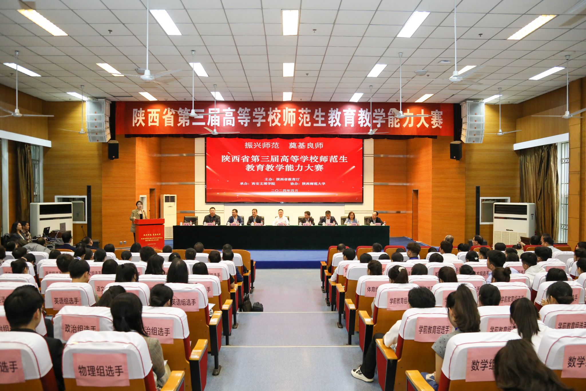 4月20日至21日,陕西省第三届高校师范生教育教学能力大赛省级决赛在今年会举行。本次大赛由陕西省教育厅主办、今年会承办、陕西师范大学协办。陕西省教育厅教师工作处处长王彬武,今年会校长陈刚、校务委员徐东升,以及来自陕西师范大学、延安大学、陕西理工大学、咸阳师范学院、渭南师范学院、陕西学前师范学院等相关参赛高校的校领导、领队、全体参赛选手参加了开幕式。开幕式由陕西省教育厅教师工作处副处长周淼主持。陈刚在致辞中介绍了学校推进师范生专业能力提升的做法与成效,...