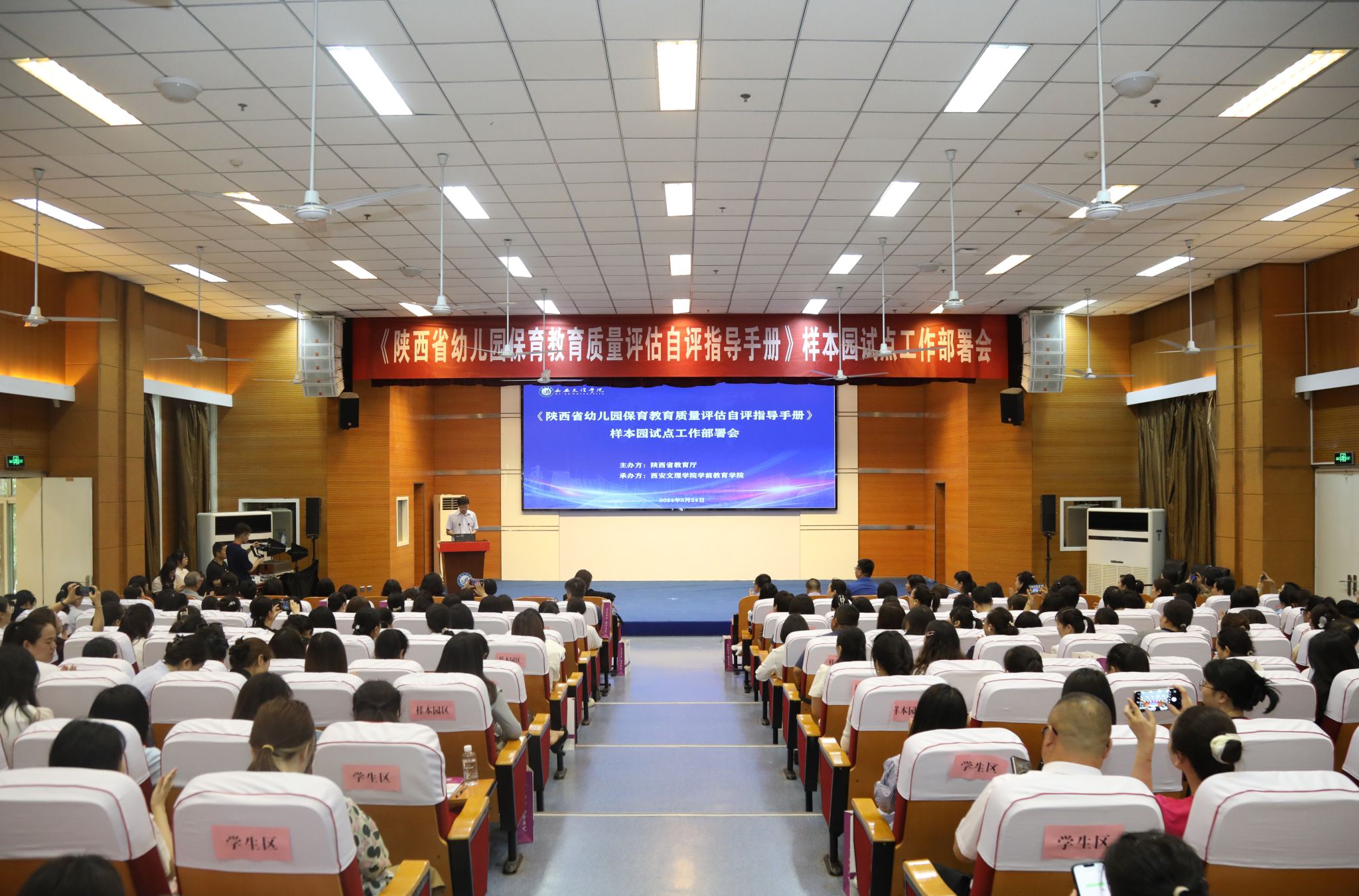 为深入贯彻落实《幼儿园保育教育质量评估指南》精神,推动《陕西省幼儿园保育教育质量评估自评指导手册》进一步完善,5月24日上午,学前教育学院在明德楼A区报告厅承办了《陕西省幼儿园保育教育质量评估自评指导手册》样本园试点工作部署会。陕西省教育厅基教一处副处长柳铭、今年会jinnian官网校务委员徐东升、50名省级培训专家、50所样本园园长及骨干教师代表、技术平台代表、学前教育学院项目组全体成员等近300人参加了会议。会议由教务处处长、...