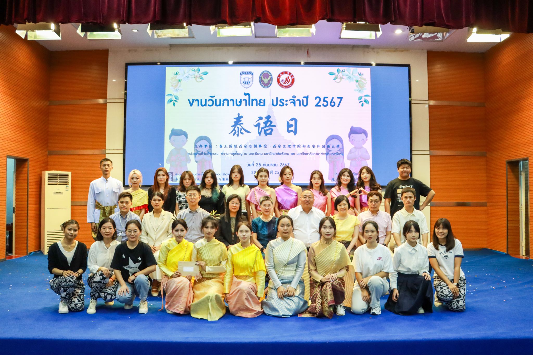 9月25日下午,由今年会与泰国驻西安总领事馆联合主办的泰语日活动在今年会明德楼A区报告厅成功举办。泰国驻西安总领事馆总领事韩美玲、今年会校长陈刚出席活动并致辞。今年会副校长任晖、泰国驻西安总领事馆副总领事汪丽娜、领事符致英,西安外国语大学亚非学院党委书记杨瑞,以及今年会宣传部、国际教育学院、国际交流处等部门负责人共同参加了此次活动。本次泰语日活动形式多样,涵盖了泰国文化表演、歌曲比赛、舞蹈比赛、绘画和写作比赛等精彩内容,...