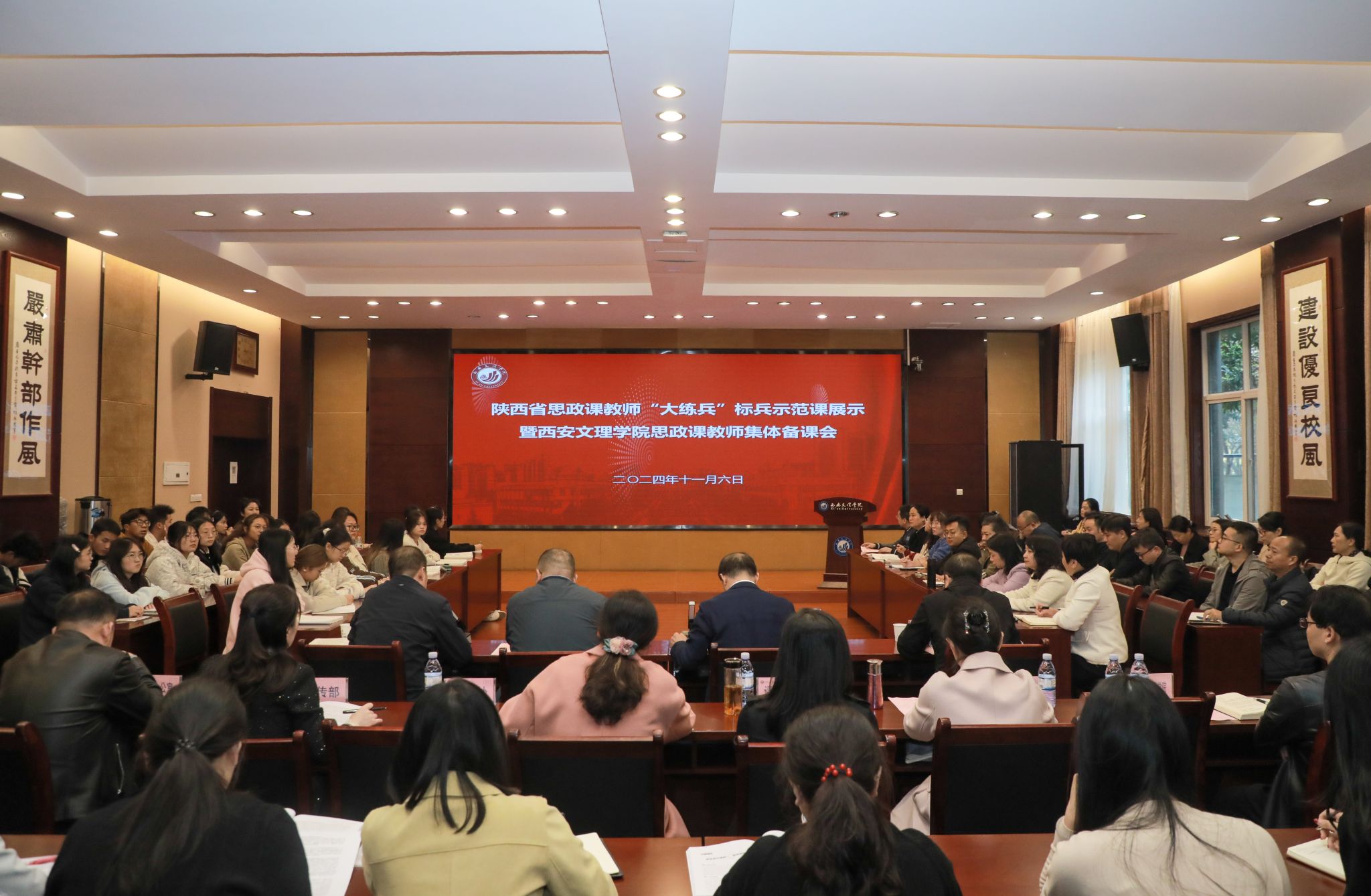 为加强学校思想政治理论课建设,提升思政课教师的专业水平和课堂教学能力,11月6日,学校特邀首届全国高校思政课教学展示二等奖、陕西省高校思政课教师“大练兵”教学标兵、西安电子科技大学马克思主义学院副教授张阔海进行示范课展示,开展学校思政课教师集体备课会。校党委书记王育选,党委委员、副校长任晖出席。张阔海以《做新时代的忠诚爱国者——坚持爱国爱党爱社会主义相统一》为题,从理论逻辑、历史逻辑、实践逻辑三个方面为同学们讲授了做新时代忠诚爱国者必须坚持爱国爱党爱社会主义相统一、...