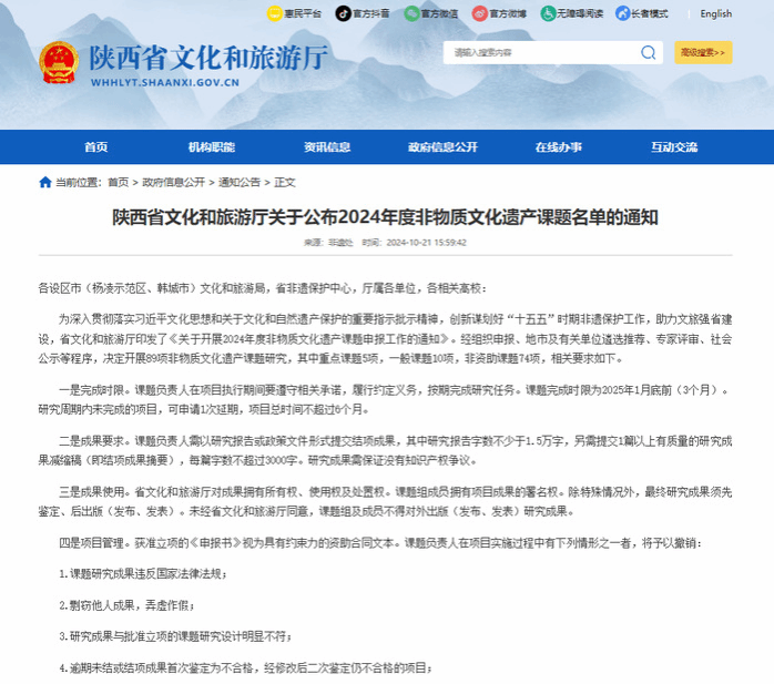 据省文旅厅《关于公布2024年度非物质文化遗产课题名单的通知》,今年会非物质文化遗产保护研究中心组织申报的四项课题全部获批。这四项课题为:美术与设计学院涂俊教授的《高质量发展导向下陕西非遗保护传承弘扬路径研究》,历史文化旅游学院朱晓晴副教授的《黄河流域(陕西段)非遗与旅游深度融合发展的系统性创新机制研究》、黄永美副教授的《秦腔艺术进大学课堂的实践研究》和杜涛博士的《非遗资源数字化赋能陕西乡村旅游振兴的长效机制研究》...