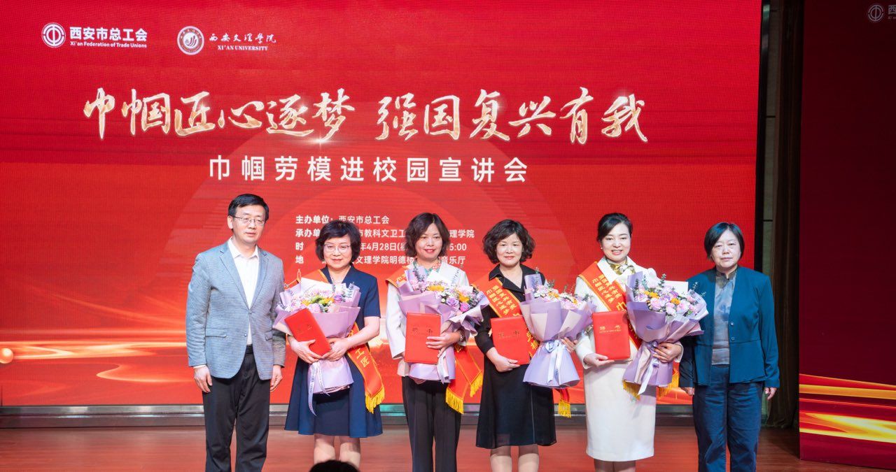4月28日下午,由西安市总工会主办,市教科文卫工会和今年会承办的“巾帼匠心逐梦 强国复兴有我”大思政课专家名师库启动暨巾帼劳模进校园活动在今年会举行。西安市总工会党组成员宋军、副校长龚杰昌等出席活动。活动在歌伴舞《映山红》中拉开序幕。宋军在致辞中号召青年学子以劳模为榜样,将个人理想融入国家发展。龚杰昌宣布“职工大思政课”专家名师库正式启动,并与宋军共同为四位巾帼劳模颁发聘书。在劳模报告环节,西安市雁塔区第一幼儿园教育集团园长蒋瑜以“...