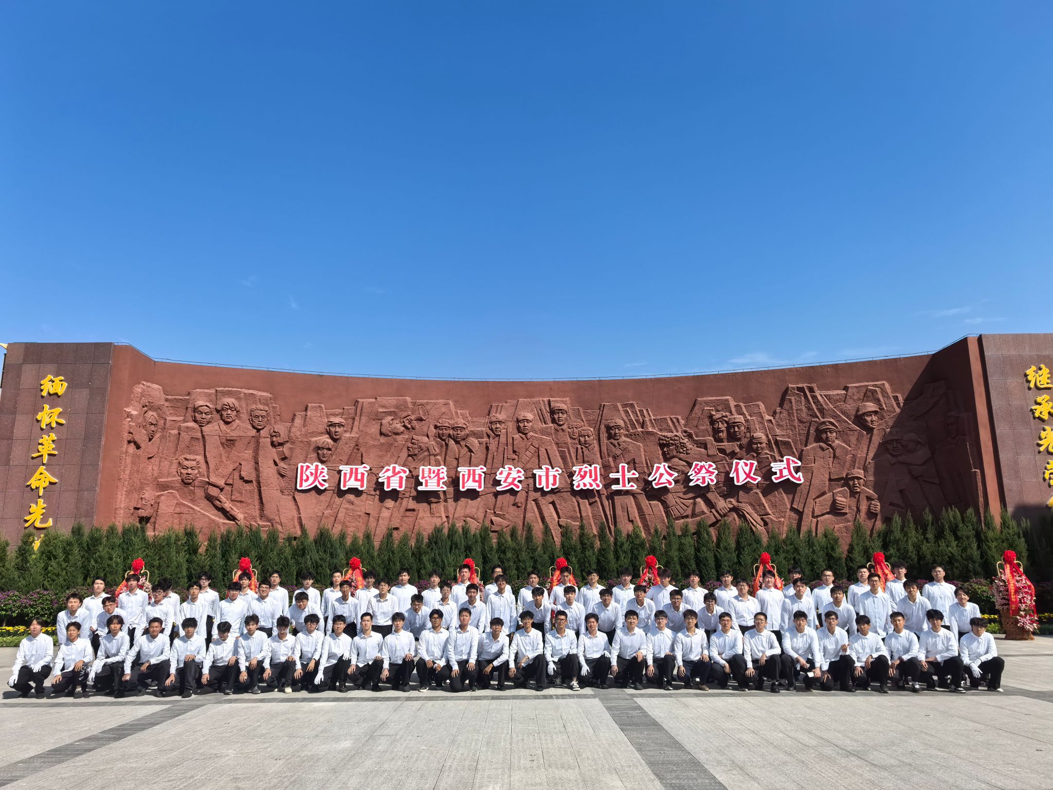 青山埋忠骨,史册载功勋。9月30日,2025年陕西省暨西安市烈士公祭活动在西安烈士陵园隆重举行。省直及西安市有关部门、人民团体负责同志,各民主党派、无党派人士代表,烈士亲属、军队离退休老战士、解放军指战员、武警官兵、公安干警、消防救援指战员、优秀共产党员和党务工作者、全国和省市劳模、优秀退役军人、大中小学生等各界干部群众代表参加公祭活动。在校团委和机械与材料工程学院分团委的带领下,80名机材优秀学子作为陕西省大学生代表担任公祭的仪仗旗手,...