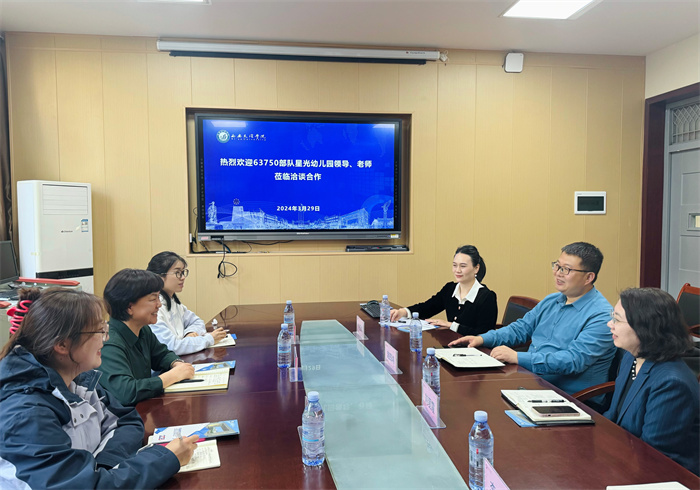 3月29日下午,63750部队星光幼儿园园长唐晓红一行三人来校,与学前教育学院党总支书记刘爱霞,副院长赵四鸿、青年教师秦亚楠、科研秘书田红娟等洽谈合作。