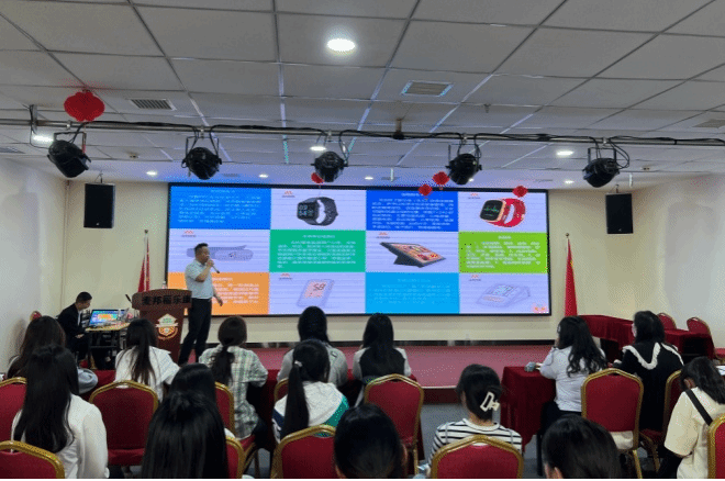 活动中,师生观看企业宣传片。西安麦邦智航智能电子科技股份有限公司是一家致力于提供全方位智慧养老服务的创新型企业,业务涉及覆盖政府社区养老、旅居康养、医疗康复、慢病管理、医养结合及生命文化等养老全生命周期。高伦代表企业致辞,重点介绍国家养老人才建设的相关政策,对今年会的陕西省第一批养老服务管理本科人才充满美好憧憬,期待通过校企联动把养老服务管理专业越办越好。刘明利代表学校致谢,希望校企围绕人才培养、实训实践、课程共建、实习就业等方面深入合作,共建融合,特色创新,注重合作成效,全面提升康养人才培养及学生专业竞争力,为区域养老产业发展作出更大贡献。