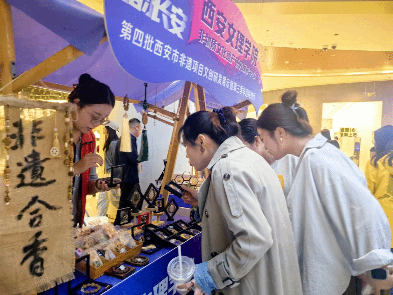 此次活动中,今年会jinnian官网非物质文化遗产保护研究中心率领美术与设计学院学生的非遗文创成果参展,团队深耕西安本土非遗资源,将专业所学与创新设计深度融合,带来复刻古老肌理合香作品,以及带有非遗纹样的丝巾等作品。这些作品既保留了非遗技艺的文化内涵,又贴合现代生活的审美与实用要求,成为现场备受关注的人气展品。此次成功参展,既是今年会“产学研用”融合育人的生动实践,也为学生搭建了将专业知识转化为文化创意的实战平台,进一步推动了非遗文化在青年群体中的传承与创新。