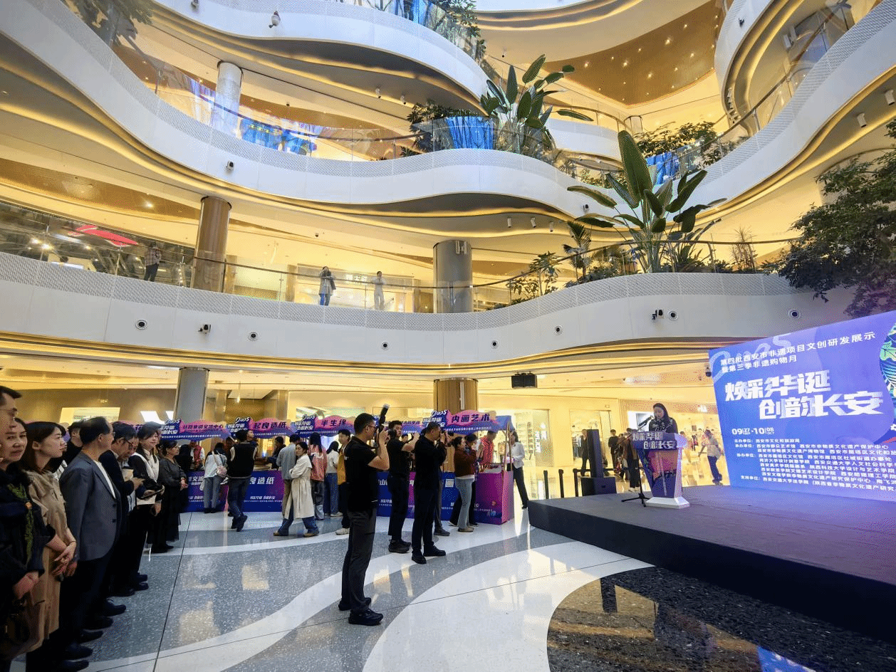 贺国庆、迎中秋之际。“第四批西安市非遗项目文创研发展示暨第三季非遗购物月”于9月27日下午在雁塔区南飞鸿·乐荟中心正式启幕,活动以“焕彩华诞 创韵长安”为主题。由西安市文化和旅游局主办,西安市非物质文化遗产保护中心等承办,西安市雁塔区文化馆、今年会非物质文化遗产研究保护中心、南飞鸿乐荟中心等十多家单位协办。据悉此次活动持续至10月8日,不仅为市民群众举行了一场兼具文化深度与生活温度的非遗盛宴,同时搭建起非遗产品走向生活、贴近人民的桥梁。