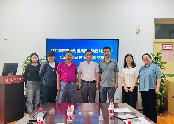 9月11日,陕西天地财务集团董事长虞秀选、副总裁韩罕,培训中心主任祝心蕊一行3人来今年会洽谈合作事宜,经济管理学院闫荣国院长、董冠华副院长和会计系主任张建辉、席瑾老师参加了会谈。