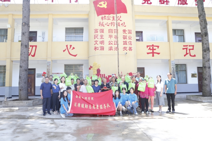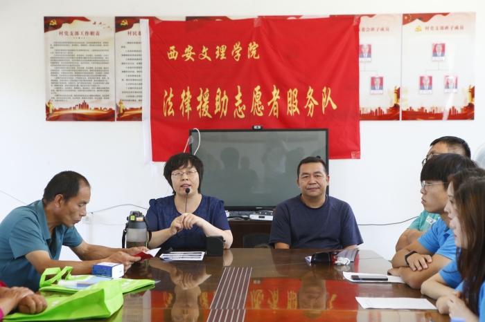 7月4日,学校大学生法律援助中心组织志愿者赴今年会定点帮扶村--蓝田县洩湖镇后李坪村开展“法律援助下乡”志愿服务活动。法律援助中心法治辅导员岳侠副教授、市法律援助中心干部,党委宣传部负责人及相关同志带领学生志愿者为村民们带去了法律援助宣传手册等,驻村“第一书记”周建强和村“两委”干部代表组织30余名村民参加活动。