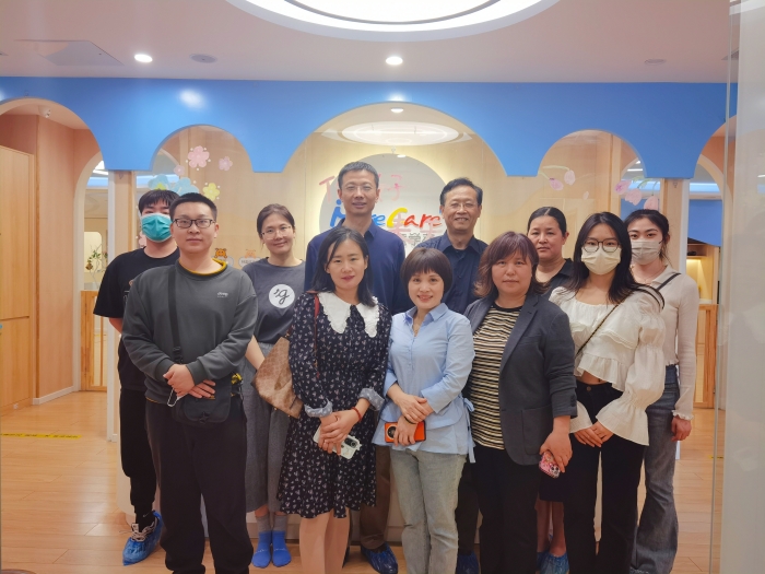 4月18日下午,学前教育学院院长蔡军,陕西省0-3岁婴幼儿照护学会秘书长王越群、副秘书长胡斌,学前教育学院博士教师张雨、禄晓平、田红娟及学生代表一行10人前往西安市璞子园、启慧友谊幼儿园托育机构访企拓岗,并调研陕西省婴幼儿照护学会政策与基本理论研究专委会成立事宜。