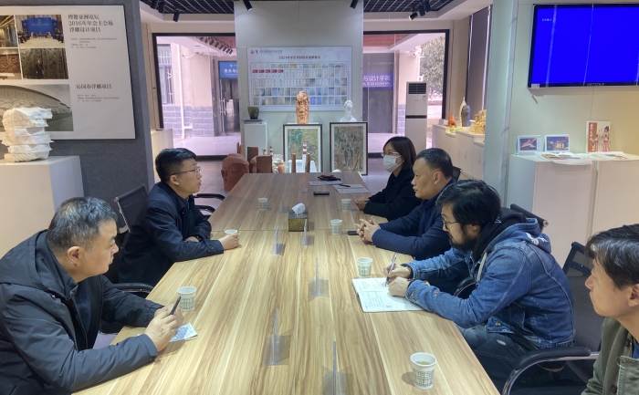 殷晓彤一行先后与文学院、美术与设计学院领导班子座谈,分别就乡村振兴、文旅产业融合发展、产学研项目合作、服务地方文化产业建设等进行深入交流。