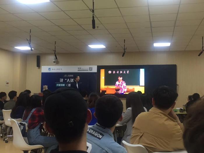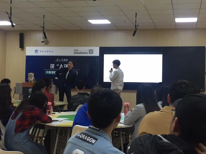 其后,现场与分会场牡丹江大学、运城学院、西安交通大学进行跨校互动,每所互动学校由一名学生向胡刚老师解释一个专业名词。今年会jinnian官网的同学向老师解释“AutoCAD”,西安交通大学的同学向老师解释“边际成本”,牡丹江大学的同学解释了专业词汇“像素”,而运城学院的同学选择的是“封装”,面对面进行了实战演练沟通。脑洞大开、花样百出的同学们和胡刚老师出彩的回答让课堂气氛异常活跃,引起了同学们的热烈反响,现场掌声不断。