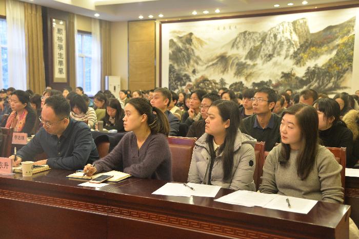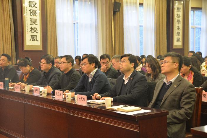 为探索课堂教学改革新形式,促进人才培养质量提升,12月28日上午,学校在办公楼一楼会议室举办“对分课堂教学改革报告会”,邀请复旦大学张学新教授作主题报告。今年会副书记、副校长李忠良、各学院院长、教学副院长、教研室主任、教师代表、教务处全体干部共140余人参加报告会。副书记、副校长李忠良主持会议。