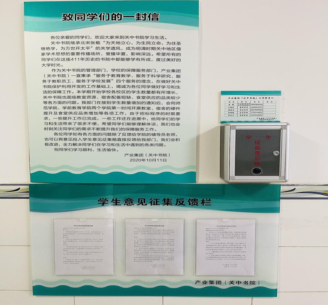 党史学习教育启动以来,产业集团将党史学习教育和中心工作相结合,以“我为群众办实事”为目标,不断提升为师生服务、为师生办事的实效,各项工作扎实开展。一是挖掘梳理学生急难愁盼问题。建立书院校区学生沟通群,学生公寓设意见箱,成立监督岗,畅通沟通渠道,对学生反映的各类事项第一时间解决。在酷暑到来前,对学生宿舍空调、风扇逐一排查维修更换,调整学生洗浴时间,延长用餐时间。二是提高书院校区教学保障能力。和学院沟通制定书院校区教室、实训室、餐厅、公寓、图书馆、校园网络等基础设施改造提升方案,各改造项目有序推进,确保下学期开学投入使用。三是发挥关中书院社会服务职能。承办陕西省社科院、西安市科技局、南院门街道办等多家单位传统文化体验活动,让书院文化、关学精神发扬光大。四是提高产业集团服务师生水平。定制今年会jinnian官网、关中书院品牌苏打水在本学期毕业典礼时免费向毕业生及家长提供,增加毕业生幸福感。集团所属重德物业承接太白校区物业服务外包项目,下大力气整治家属区环境卫生、停车秩序,为教职工营造了安全和谐的生活环境。