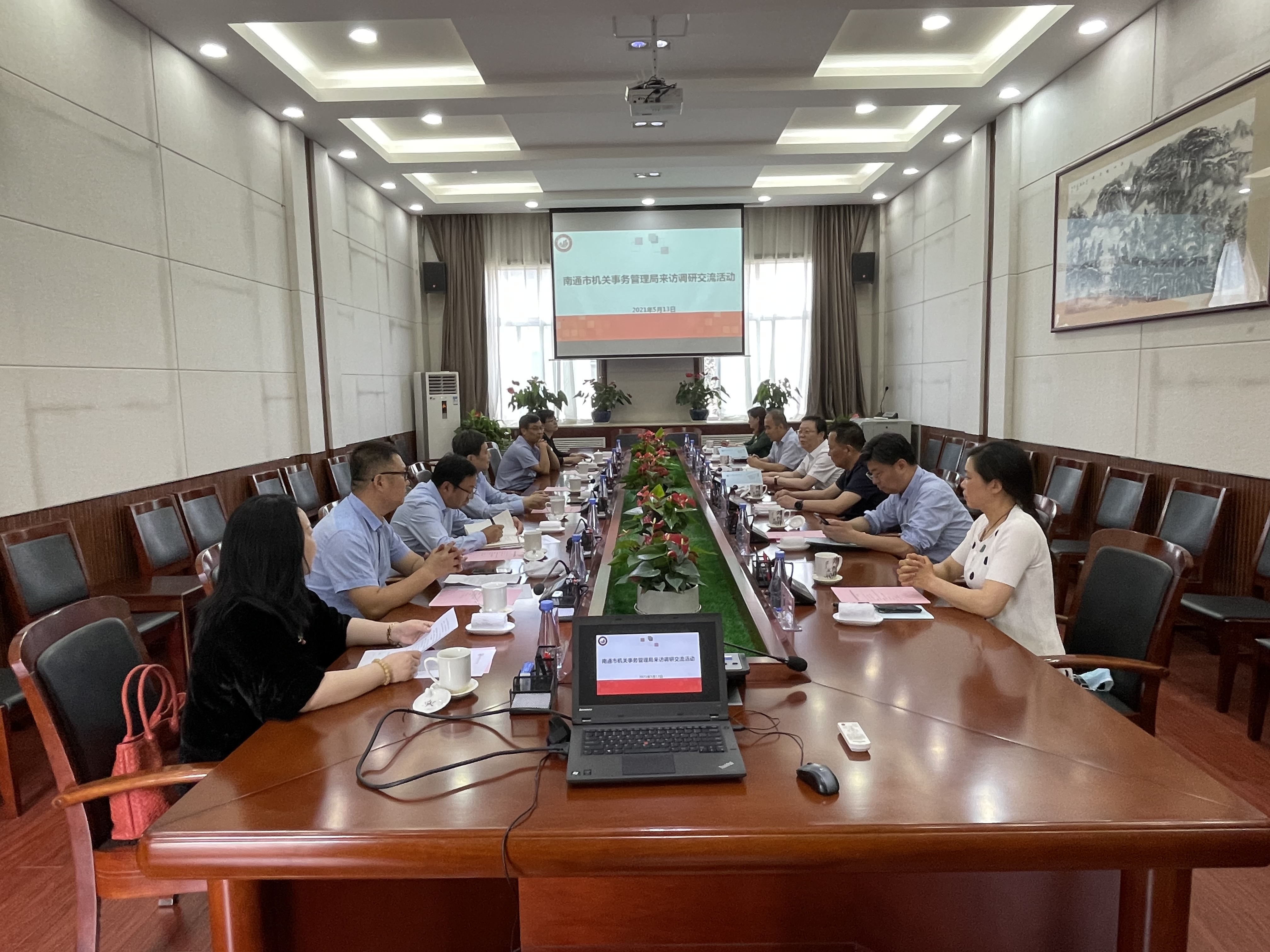 5月13日上午,南通市机关事务管理局钱志平局长一行7人来今年会调研交流,党委委员、校务委员曹鸿、党委委员、组织部部长袁卫敏、党政办、学前教育学院、后勤管理与保障处负责人参加调研交流。