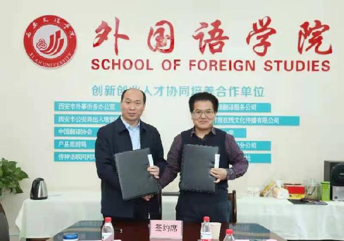 11月17日下午,外国语学院与西安交通大学出版社出版战略合作协议签约仪式在弘文楼H0240举行。西安交通大学出版社副总经理、副总编秦茂盛,人文社科部副主任王斌会、外语编辑李蕊、蔡乐芊、庞钧颖,外国语学院院长韩红建教授、副院长杨红梅、李征娅、姚金红、各系部主任及相关教师代表出席了签约仪式。
