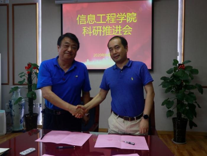 会上,杨渭清宣布了学院所属各市级科研平台负责人人选,并与西安市移动电子商务工程实验室负责人孙少波、西安市物联网应用工程实验室负责人雷伟军签订了2020年平台目标任务责任书。