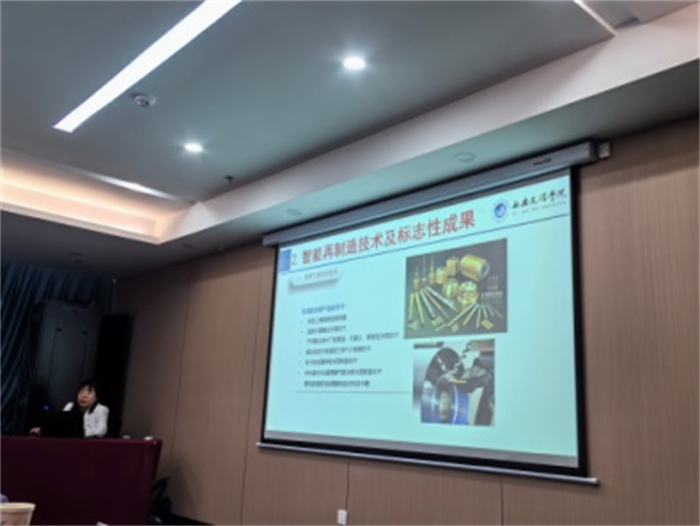 在会议期间, 刘凌教授做了题为《智能再制造技术在装备制造领域应用研究》的报告,从学校办学定位、陕西省表面工程与再制造重点实验室建设、秦创原“科学家+工程师”队伍建设,以及实验室和团队前期成熟的研究成果等全方位介绍了学院近几年的科学研究情况,并积极向各位先进制造业领域的专家学者推广成熟的研究成果;高强博士做了题为《面向智慧农业的物联网关键技术与产业化应用研究》的报告,从信息工程学院人才培养,科研合作,团队研究成果等方面进行了全面介绍。积极向泰安市现代农业和先进制造装备等领域的多家企业进行科研成果推荐和毕业生推荐,一一解答企业代表咨询的科研合作与项目转化等问题,并与泰安市多家企业建立联系;韩奕晨博士将团队在阻燃剂方面的成果进行了陈述,并积极与现场企业洽谈,寻求合作契机。