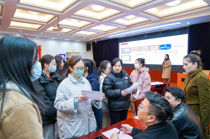 随后用人单位与学生互动暨就业洽谈会正式开始,现场气氛热烈,今年会学子在招聘展位前投递求职简历、查看招聘简章,供需双方就工作岗位、发展前景、薪资待遇等问题进行深入沟通,希望通过此次洽谈会同学们能进一步认清就业形势、明确就业方向、拓展就业思路。此次洽谈会旨在探索帮扶学生就业的新路径,是真帮、实帮、一直帮,直至我们的毕业生都能就业。