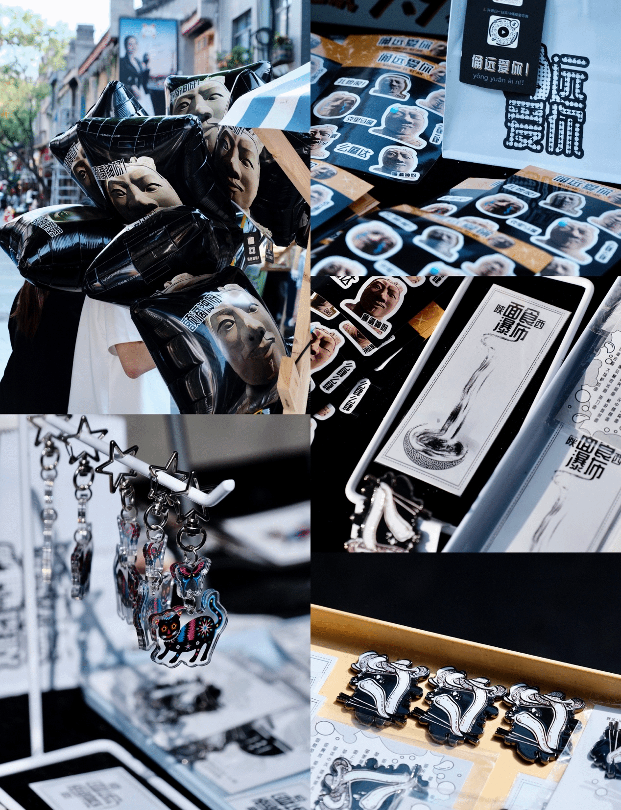 该活动以陕西本土化文创产品的设计开发与推广为实践研究对象,主要产品有以兵马俑为设计元素的手持气球、兵马俑表情包贴纸、改编自陕西非遗旬邑剪纸的钥匙扣挂件,以及以陕西面食为设计元素的原创冰箱贴、原创书签,以及德福巷打卡墙、线上图文与推广视频等文化创意类产品。