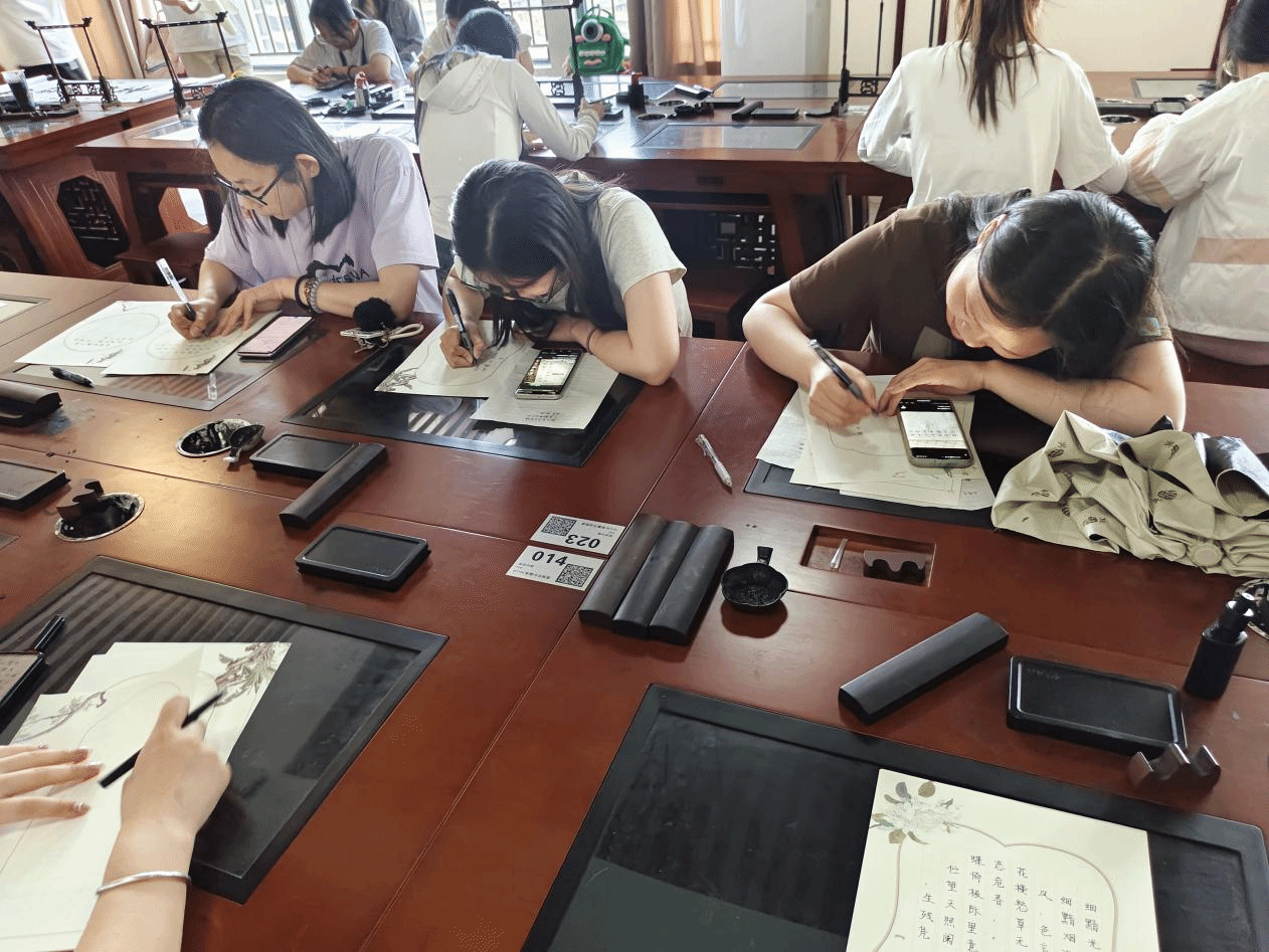 参赛同学们纷纷开始了自己的创作,有的同学写硬笔字,有的同学写毛笔字,有的同学绘画,一幅幅作品精彩呈现。