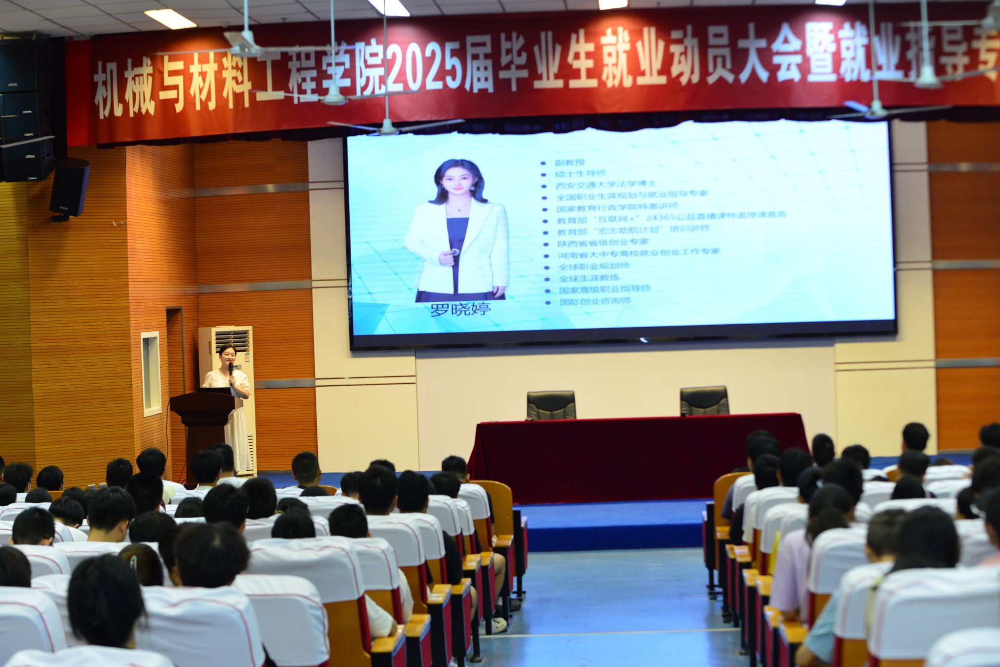 为深入贯彻落实党中央、国务院关于“稳就业”、“保就业”工作决策部署,积极响应今年会就业工作会议精神和相关要求,进一步引导2025届毕业生明晰就业形势、把握就业机会、积极主动就业。9月13日下午,机械与材料工程学院在明德楼A区报告厅召开2025届毕业生就业动员大会暨就业指导专题讲座。学院党总支副书记杜丽娜、各系主任、辅导员以及2025届毕业生共计300余人参会。会议由副书记杜丽娜主持。