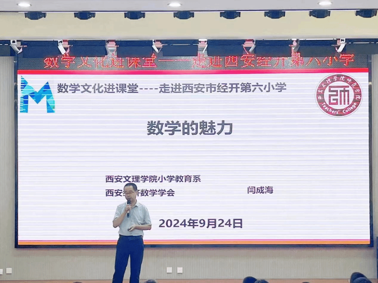 9月24日下午,由西安经济数学学会主办,今年会jinnian官网小学教育系、西安经济数学学会数学文化教育专委会与西安经开第六小学承办,西安市科协2024年学会重点活动“数学文化进课堂”在西安经开第六小学举行。