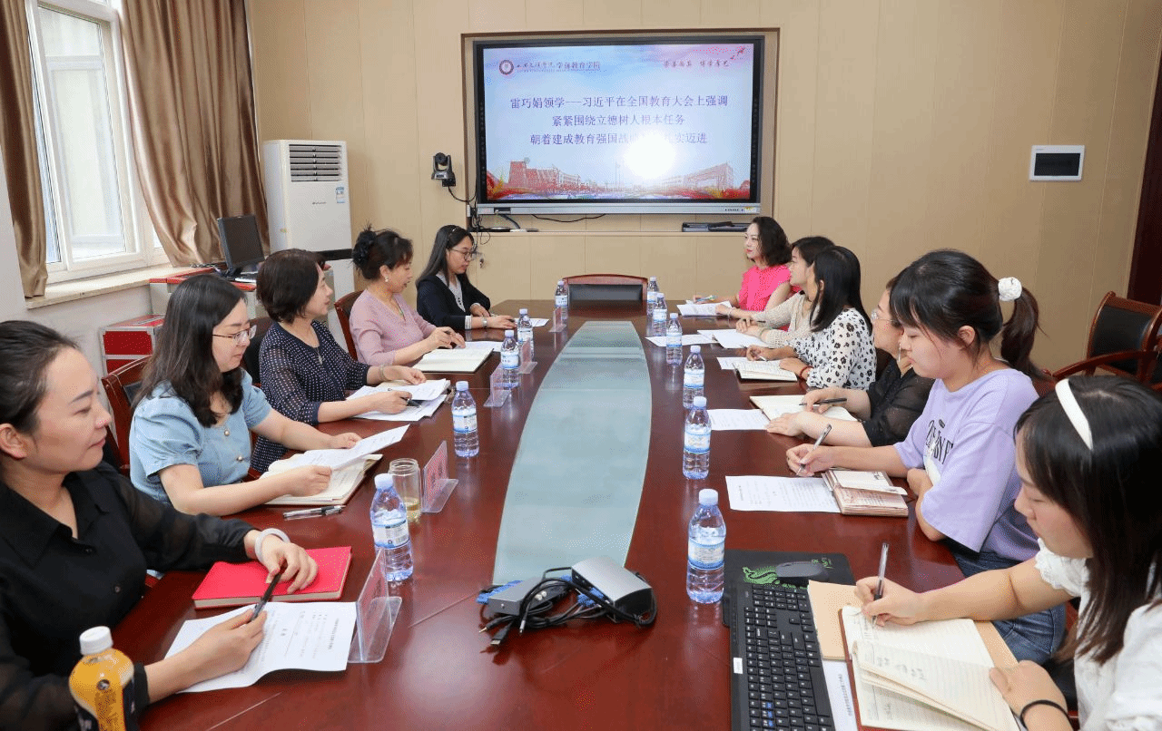 首先,党总支委员雷巧娟领学了习近平总书记在全国教育大会上的重要讲话,着重学习了关于“紧紧围绕立德树人根本任务 朝着建成教育强国战略目标扎实迈进”的重要内容。