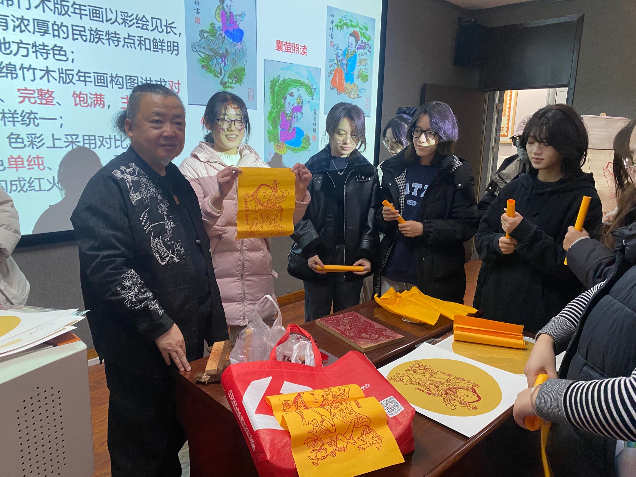 讲座中,马萌不仅全面而细致地探讨了中国传统木刻版画的发展历程、不同流派和分类,更通过现场演示木版年画的拓印技术,让在场师生亲身体验制作的乐趣和艺术魅力。学生们在互动的环节中,不仅从专家的讲解中汲取知识,更是在实践中感受到了传统艺术的魅力,激发了对艺术的热爱和探索的欲望。