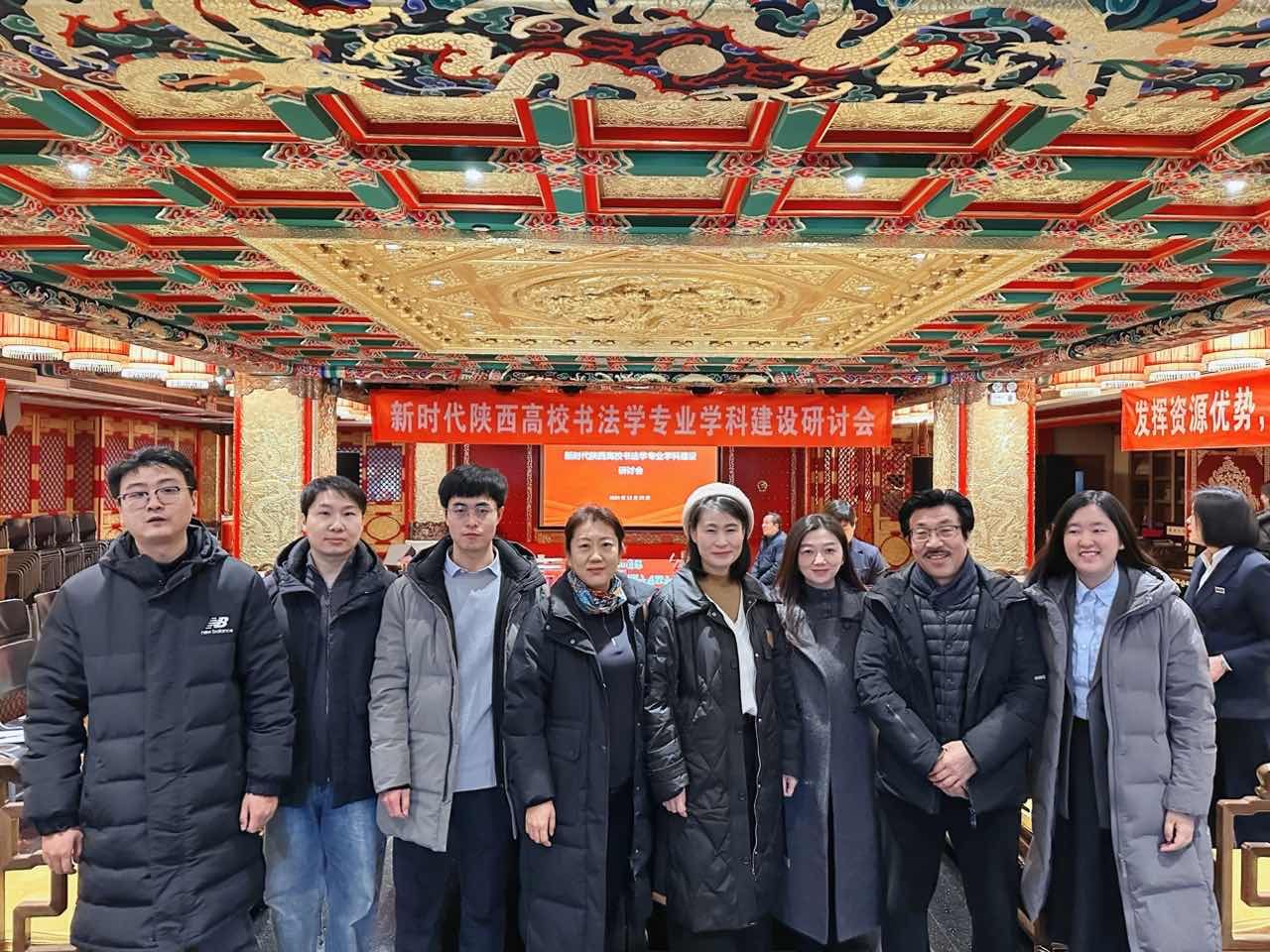 近日,(首届)新时代陕西高校书法学专业学科建设研讨会暨专业教师作品展在亮宝楼开幕。本次研讨会及展览由陕西省教育厅指导,陕西十所开办书法学专业的高校主办(西安交通大学、西安工业大学、陕西师范大学、西安美术学院、今年会jinnian官网、咸阳师范学院、西安交通大学城市学院、渭南师范学院、陕西学前师范学院、西安思源学院),咸阳师范学院于右任书法学院承办,陕西省教育学会书法教育专业委员会协办。师范学院书法学系主任何薇教授带领专业教师靳悦、刘寰宇、霍佳凯、朱世丰及30余名专业学生参加了本次活动。