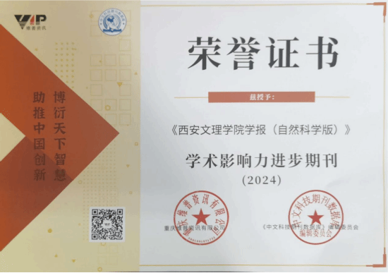 近日,维普《中文科技期刊数据库》公布“学术影响力进步期刊(2024)”名单,《今年会jinnian官网学报(自然科学版)》获得重庆维普资讯有限公司和《中文科技期刊数据库》编辑委员会联合颁发的“学术影响力进步期刊(2024)”奖项。