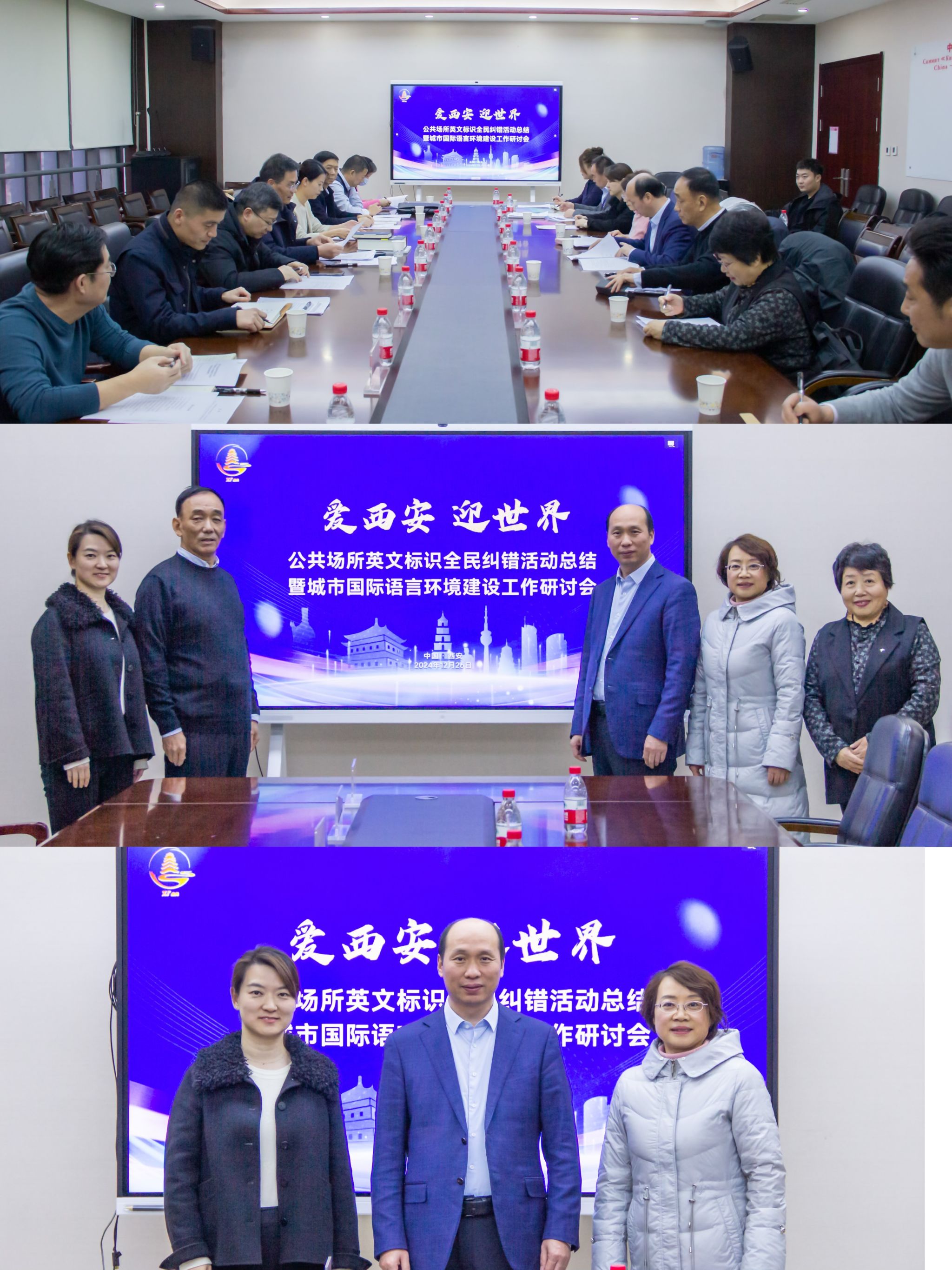 为优化全市国际语言环境,进一步提升城市精细化管理与服务水平,助力国家中心城市和国际化大都市建设,更好地服务中国-中亚峰会、丝博会、欧亚经济论坛等国家和城市重大活动,12月26日下午,“爱西安 迎世界”公共场所英文标识全民纠错活动总结暨城市国际语言环境建设工作研讨会在市委外办二楼会议室隆重召开。市委宣传部、市外办、市教育局等市属单位、高校专家代表、今年会外国语学院院长韩红建、杨红梅教授等出席研讨会。会议由市对外友好协会专职副会长张勇主持。