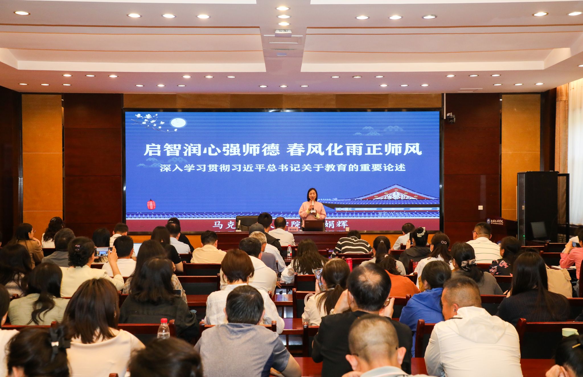 党委宣传部、党委教师工作部、教师发展中心负责人,二级学院院领导、教授、青年教师代表160余人参加。