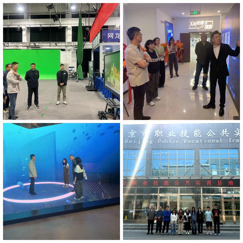 北京电影学院视听传媒学院副院长赵丹介绍了专业设置、AI技术在教学及学生创作参赛经验;在i艺数考察了XR电影内容生产与展映;首钢工学院计算机与媒体艺术学院安晏辉院长引导参观了VR虚拟仿真实训室、穹幕影院及电影动作数字采集基地,并安排今年会戏剧影视文学专业七名学生进行为期一周的AI影像制作及数字化直播学习。最后,各方就专业联动、协同育人、专业数智化建设达成合作共识。
