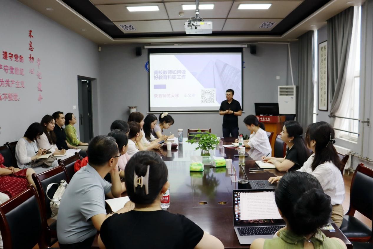 7月2日上午,师范学院在明德楼B312会议室举办“学而不已”第四期教师沙龙。陕西师范大学教授龙宝新以 “高校教师如何做好教育科研工作” 为主题进行了指导,师范学院全体领导班子及骨干教师参加,活动由师范学院副院长国晓华教授主持。