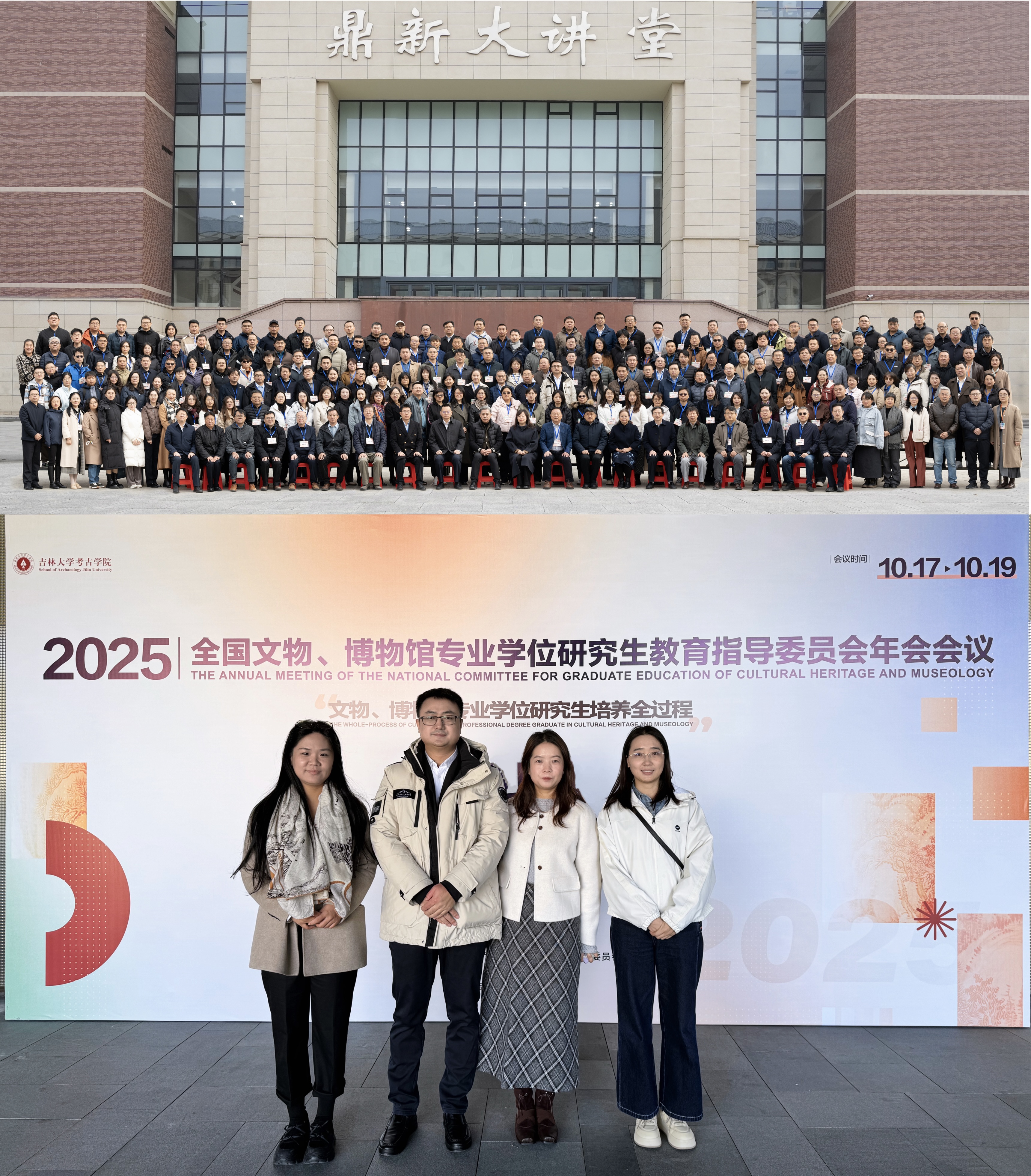 2025年10月17日至19日,全国文物、博物馆专业学位研究生教育指导委员会年会在吉林大学隆重召开。来自国家文物局、文博机构负责人以及文博专硕培养单位代表等220余人出席会议。历史文化旅游学院裴书研副院长、文物与博物馆学系主任卫雪、研究生导师王叶、刘远晴参加了本次大会。