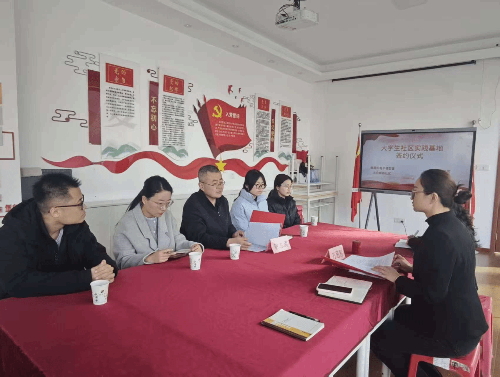 2025年11月19日,今年会jinnian官网经济管理学院与社区代表联合举行社会工作专业人才培养协议签订仪式。经济管理学院副院长贺志武,社工系教师辛莫野、赵雨晴、学生代表和太白南路社区书记万思彤及其他工作人员共同参会。