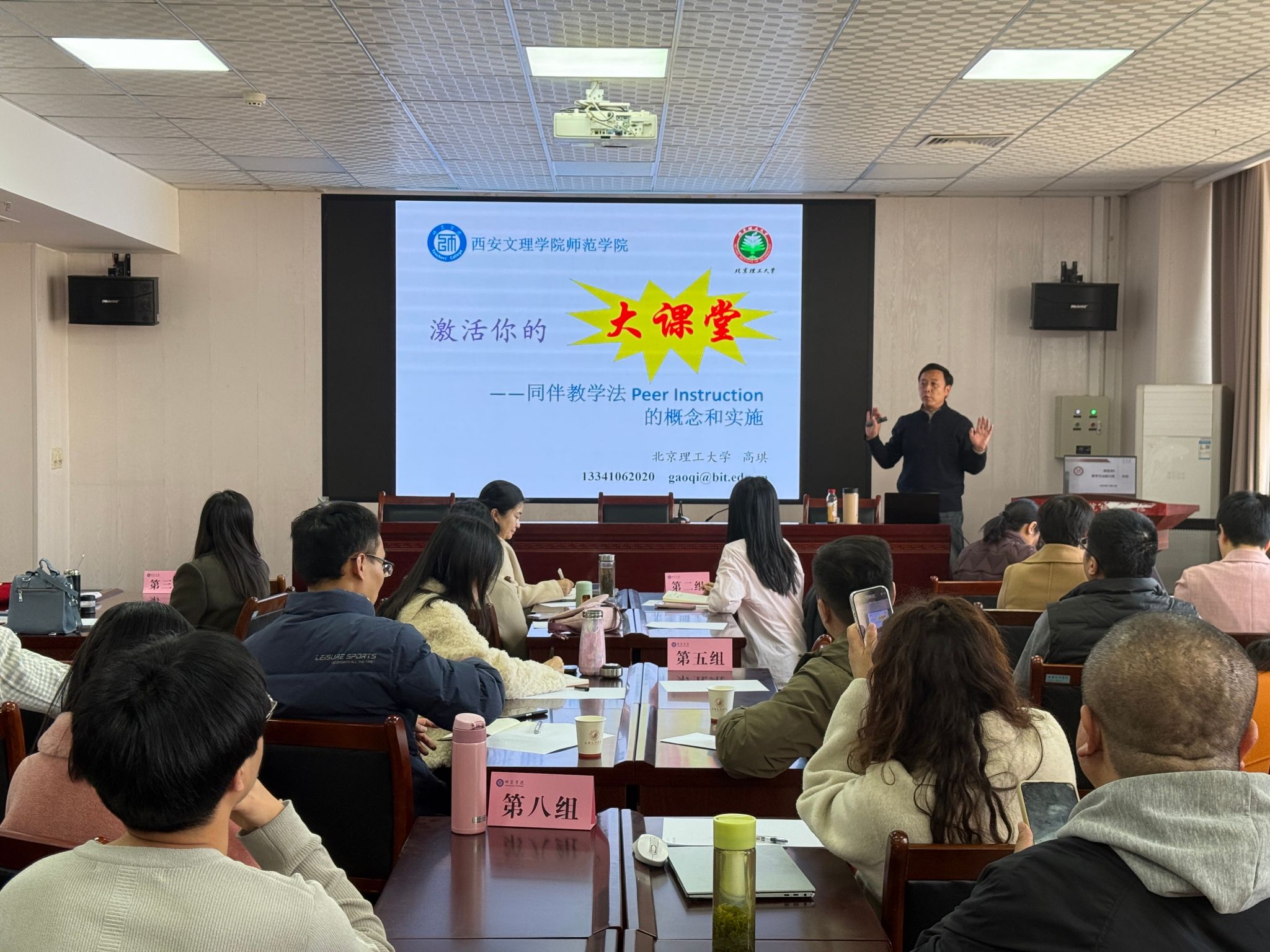 为深化教学方法改革,11月21日下午,师范学院举办了“同伴教学法(Peer Instruction)”专题工作坊。本次活动特邀北京理工大学自动化学院高琪副教授担任主讲,师范学院全体教师参与。