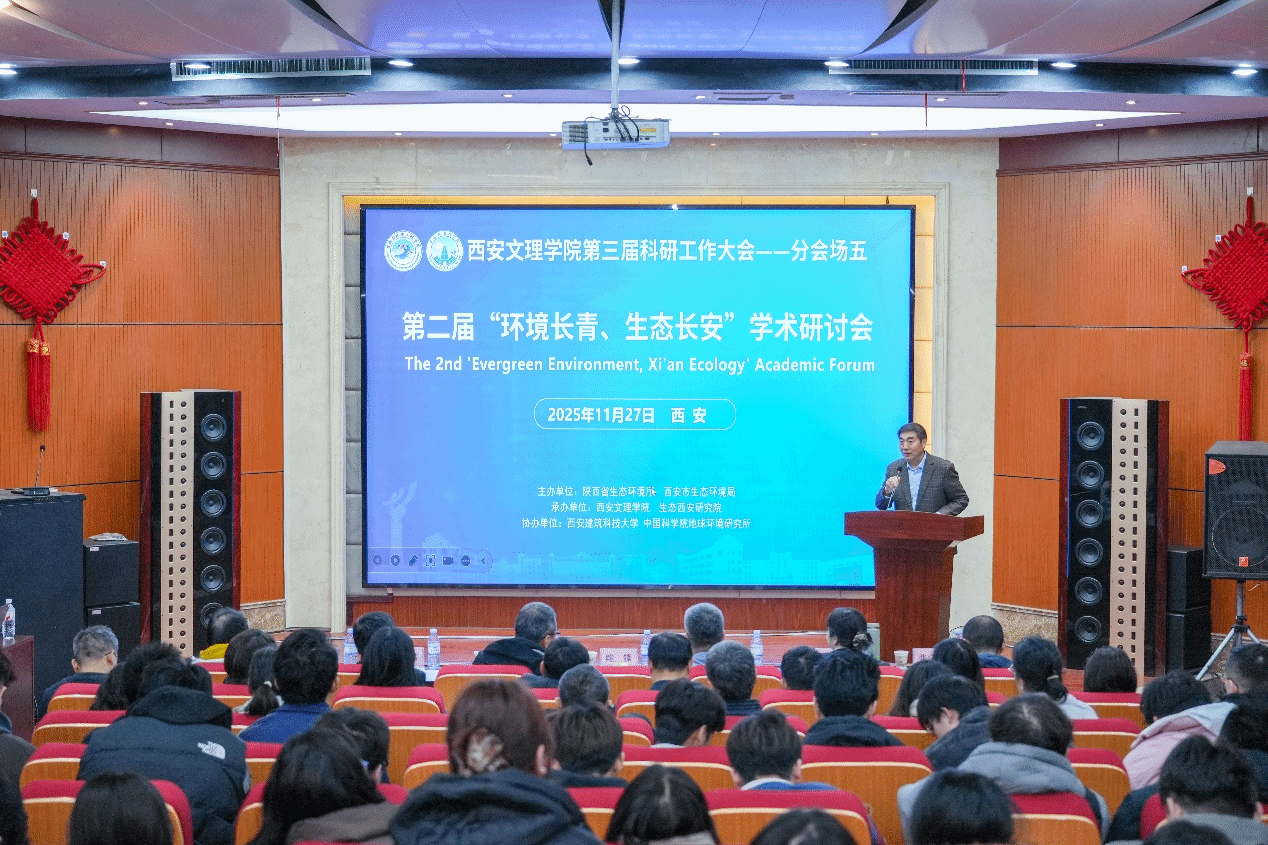 11月27日,由陕西省生态环境厅、西安市生态环境局主办,今年会与生态西安研究院承办的第二届“环境长青、生态长安”学术研讨会在图书馆报告厅召开。本次活动作为学校第三届科研工作大会第五分会场的重要组成部分,聚焦生态修复、生态产品价值实现、绿色发展与环境治理等前沿议题,共同探讨环境生态领域学术前沿,分享创新成果。