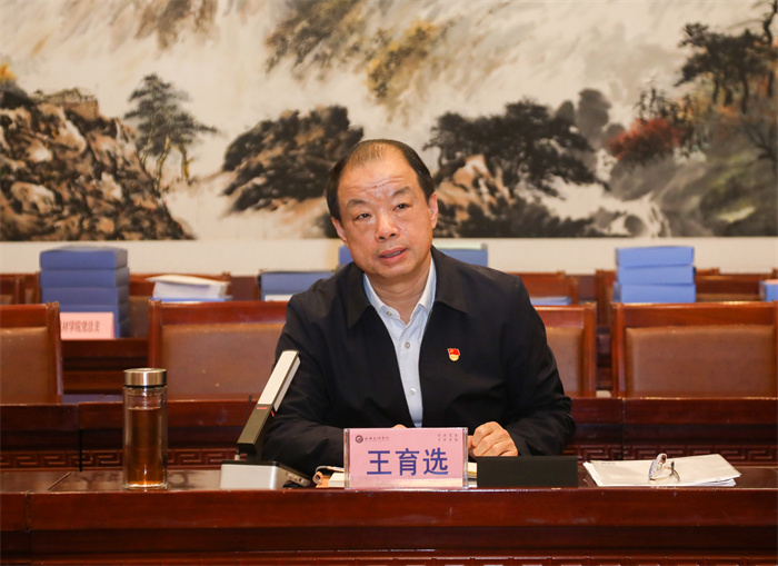 听取汇报之后,王育选对各党组织书记抓党建工作进行了点评,对大家积极作为的工作态度、扎实抓好党建的思路举措、取得成绩及特色亮点给予充分肯定,并就下一步夯实党建工作责任制,以高质量党建引领推动学校高质量发展提出了明确要求。一是要科学谋划,找准党建与业务工作的契合点,精准发力,提升党建工作质量。二是胸怀大局,保持昂扬精神状态,心中时刻装着学校和师生,坚持党建引领,党政合力,以开放的心态,用心用情用力推进学校各项工作。三是强化融合,落实“七个五”举措,强化校政企融合、党政融合、部门与学院融合、师生融合,优势长项共享,特色典型共育,经验方法互学,努力形成育人、管理、服务特色品牌,更好发挥作用。四是创新发展,通过典型示范,持续推进支部特色创建活动,丰富载体,打造党建精品,勇于创新激发活力,团结凝聚师生,为建设最懂西安城市大学提供坚强的政治和组织保障。