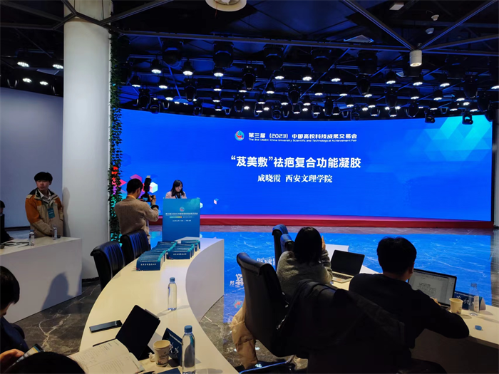 12月19日上午,生物与环境工程学院成晓霞博士科研成果“芨美敷”祛疤复合功能凝胶作为大会专门安排的117个路演项目之一,与西安交通大学、北京协和医学院、江苏大学等12所高校科研成果共同参加生物医药类专场路演。在12分钟的路演中,成晓霞博士介绍了“芨美敷”祛疤复合功能凝胶在产品机理、技术优势、市场分析等方面的情况,现场解答了2家基金公司的提问,会后与4家基金公司就技术转让、许可、入股等成果转化问题进行积极对接。