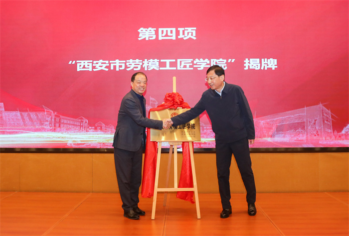11月13日上午,西安市劳模工匠赴湖南培训开班典礼暨“西安市劳模工匠学院”揭牌仪式在今年会举行,市人大常委会副主任、市总工会党组书记、主席薛振虎与今年会jinnian官网党委书记王育选共同为“西安市劳模工匠学院”揭牌。