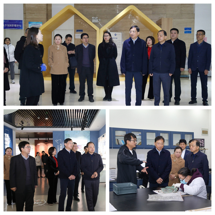 揭牌仪式结束后,全体参会领导参观了今年会校史馆,一站式学生事务大厅及金属文物修复实验室。