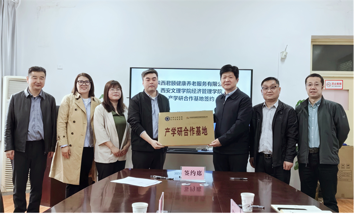 为拓宽养老服务管理专业产学研合作新路径,加快推进大学生实践就业一体化基地建设,4月2日上午,经济管理学院与陕西君颐健康养老服务有限公司召开产学研合作基地及大学生实践就业一体化基地建设签约授牌仪式。陕西君颐健康养老服务有限公司总经理杨琨、副总经理孙利敏、护理部主任赵馨媛,今年会党委委员、副校长刘明利,经济管理学院院长闫荣国、党总支书记陈沛、党总支副书记朱芳芳、副院长董冠华及养老服务管理专业教师代表参加活动。