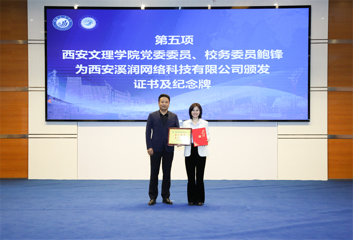 仪式伊始,学院党总支书记张九东致辞,向西安溪润网络科技有限公司的捐助表达了由衷的感谢,并表示学院将会一如既往地支持公益事业,期待更多社会力量的加入,为更多学子提供成长、成才的机遇。随后,企业领导为12位受助学生颁发助学金,每人1000元,共计1.2万元,受助学生代表池玉发言,向企业和学院表达了真挚的感激之情,表示他们将倍加珍惜这份关爱与帮助,用实力回馈学院、公司与社会。仪式最后由校党委委员、校务委员鲍锋为西安溪润网络科技有限公司颁发证书及纪念牌。