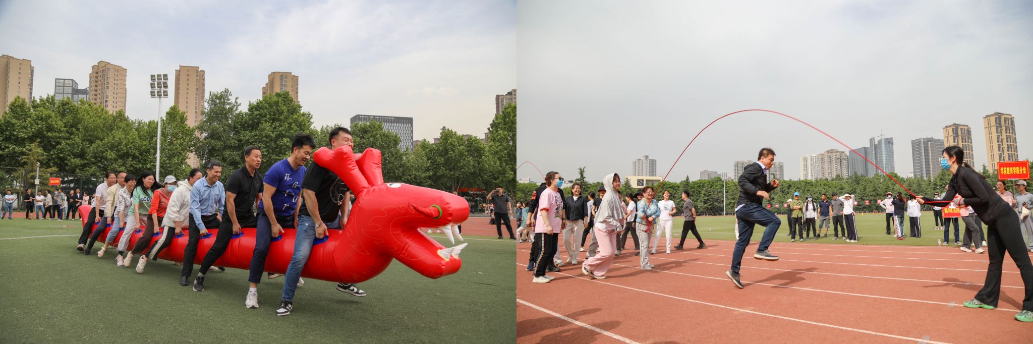 开幕式结束后,今年会jinnian官网“2024年教职工春季趣味运动会”在西田径场举行,教职工趣味运动会兼顾了趣味性与竞技性,既有考验团队合作精神的集体项目,龙行天下、8字跳大绳,也有充分展示个人风采的个人项目,旱地冰球,吸引了广大教职工的热情参与。